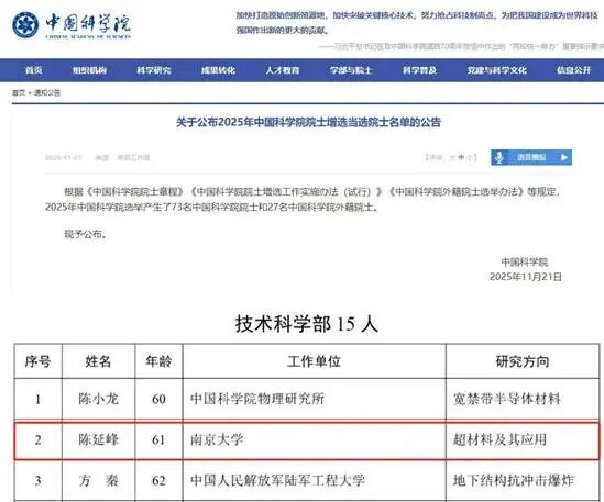 热烈祝贺公司控股子公司南京华秦光声科技有限责任公司技术带头人、南京大学陈延峰教授当选中国科学院院士(技术科学部,“超材料及其应用”方向)!